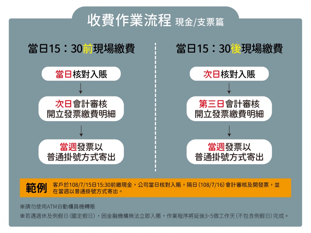 現金/支票收費流程