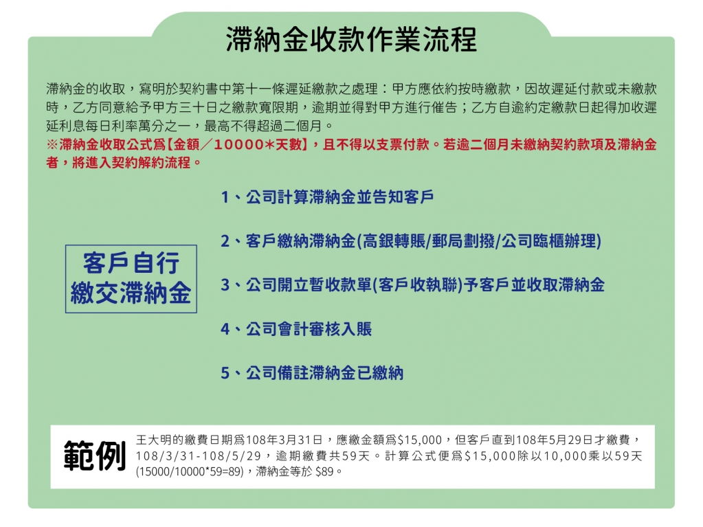 客戶自行繳交滯納金作業流程