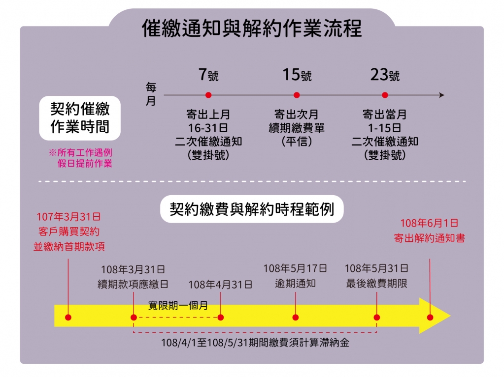 催繳通知與解約時程