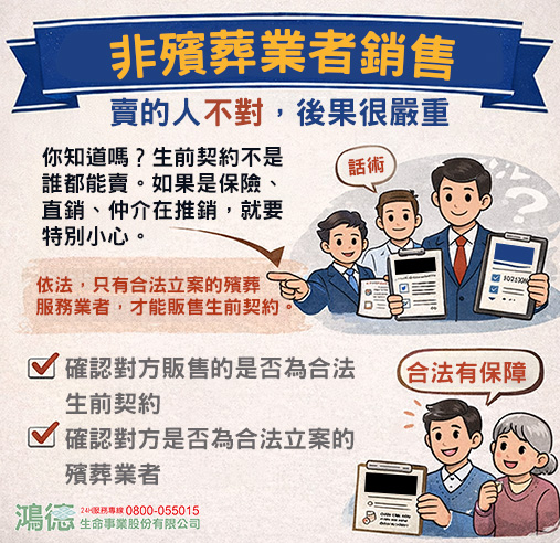 依法,只有合法立案的殯葬服務業者,才能販售生前契約。